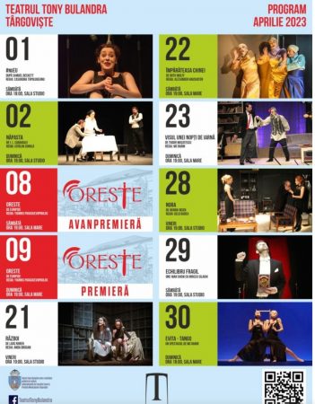 Teatrul Tony Bulandra vă propune, premergător Sărbătorilor Pascale, premiera spectacolului Oreste de Euripide, în regia lui Yiannis Paraskevopoulos, duminică, 9 aprilie 2023, sala mare, ora 19:00.Avanpremiera va avea loc, sâmbătă, 8 aprilie, sala mare, ora 19:00.