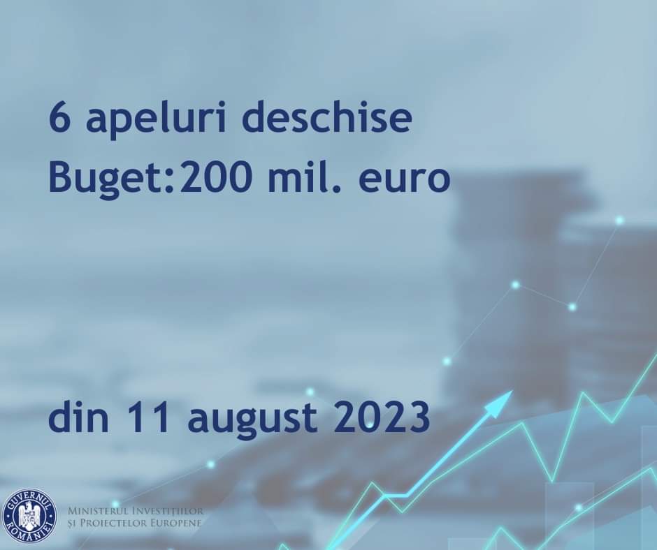 Ministerul Fondurilor Europene a deschis, vineri, 11augus, șase apeluri de proiecte, în valoare de 200 milioane euro.
