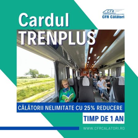 Îți place să călătorești des cu trenul? Poți opta pentru cardul TrenPlus. De fiecare dată la biletele cumpărate în baza lui, ai reducere de 25% din tariful integral de transport pe orice relaţie din țară, la rang de tren – R, RE și IR, pe o perioadă de un an. Profită de sezonul estival și răsfață-te cu un număr nelimitat de călătorii cu trenul.