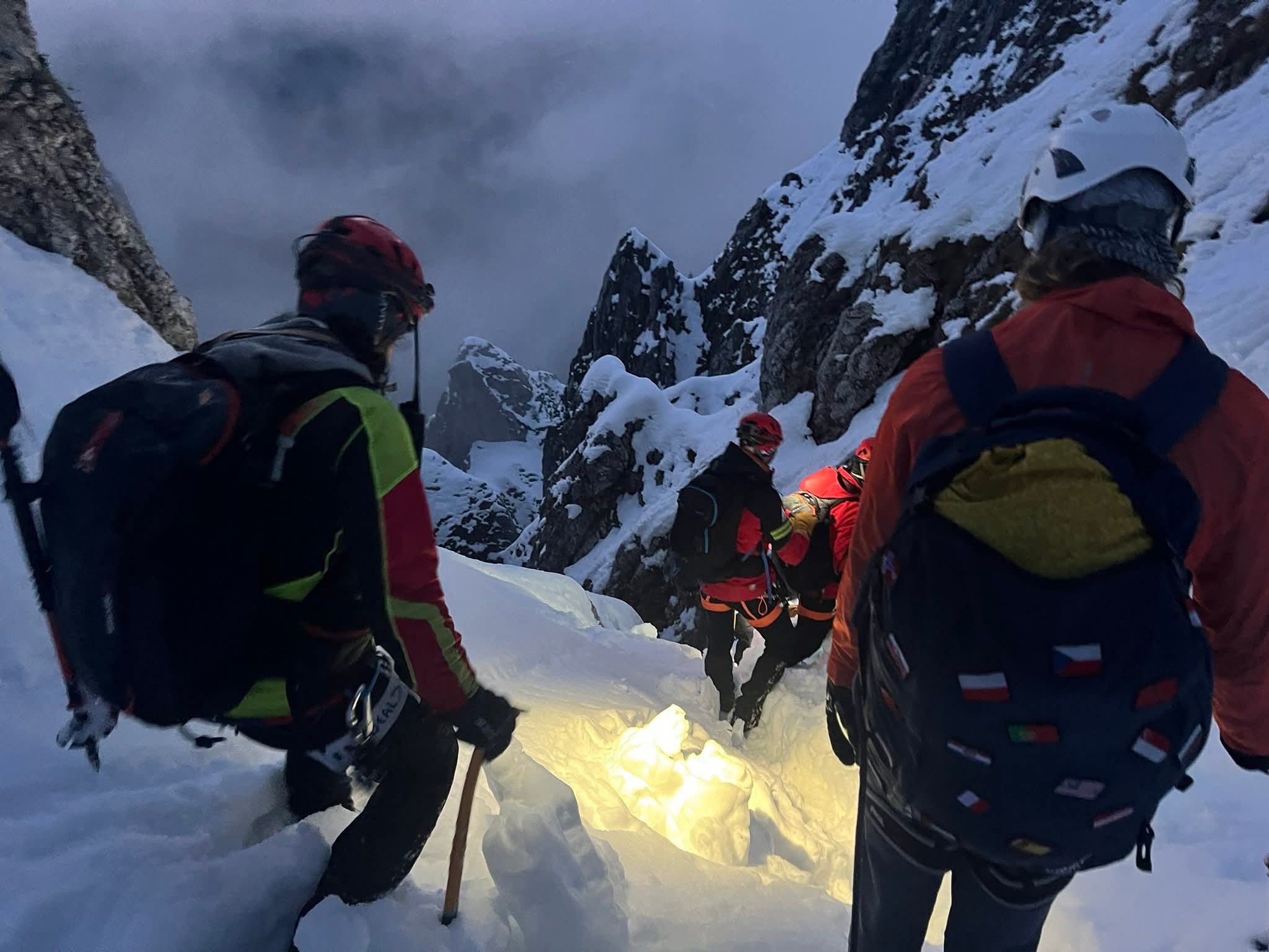 Ulterior, echipa Salvamont a reușit să stabilească comunicarea prin e-mail, confirmând că turistul se afla în dificultate. Din cauza lipsei de vizibilitate, imposibilitatea unei intervenții aeriene a impus deplasarea terestră a primei echipe de cinci salvatori, cu posibilitatea completării echipei dacă situația ar fi impus-o.