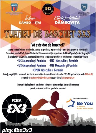 În perioada 2-4 iunie 2023, în Piața Tricolorului din municipiul Târgoviște, scoarul cu gradene, se desfășoară Turneul de baschet 3×3 ” Iubim Dâmbovița”, eveniment organizat de Clubul Sportiv Școlar Târgoviște și Consiliul Județean Dâmbovița în cadrul Zilelor Județului Dâmbovița.