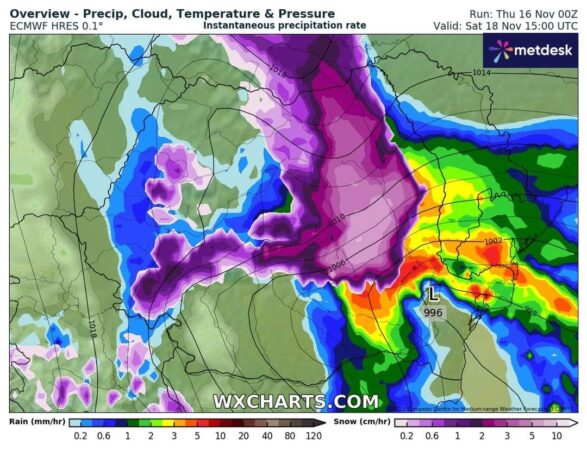 Ploile își vor face apariția încă de astăzi în sud-vest, urmând să se extindă în mai multe regiuni. De asemenea, ninsorile vor cădea încă de astăzi, 17 noiembrie, la altitudini mari de peste 1.400 de metri.