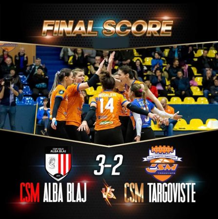 Scorul final dintre CSM Alba Blaj-CSM Târgoviște: 3-2 (20-25; 25-22; 28-26; 22-25; 15-10).