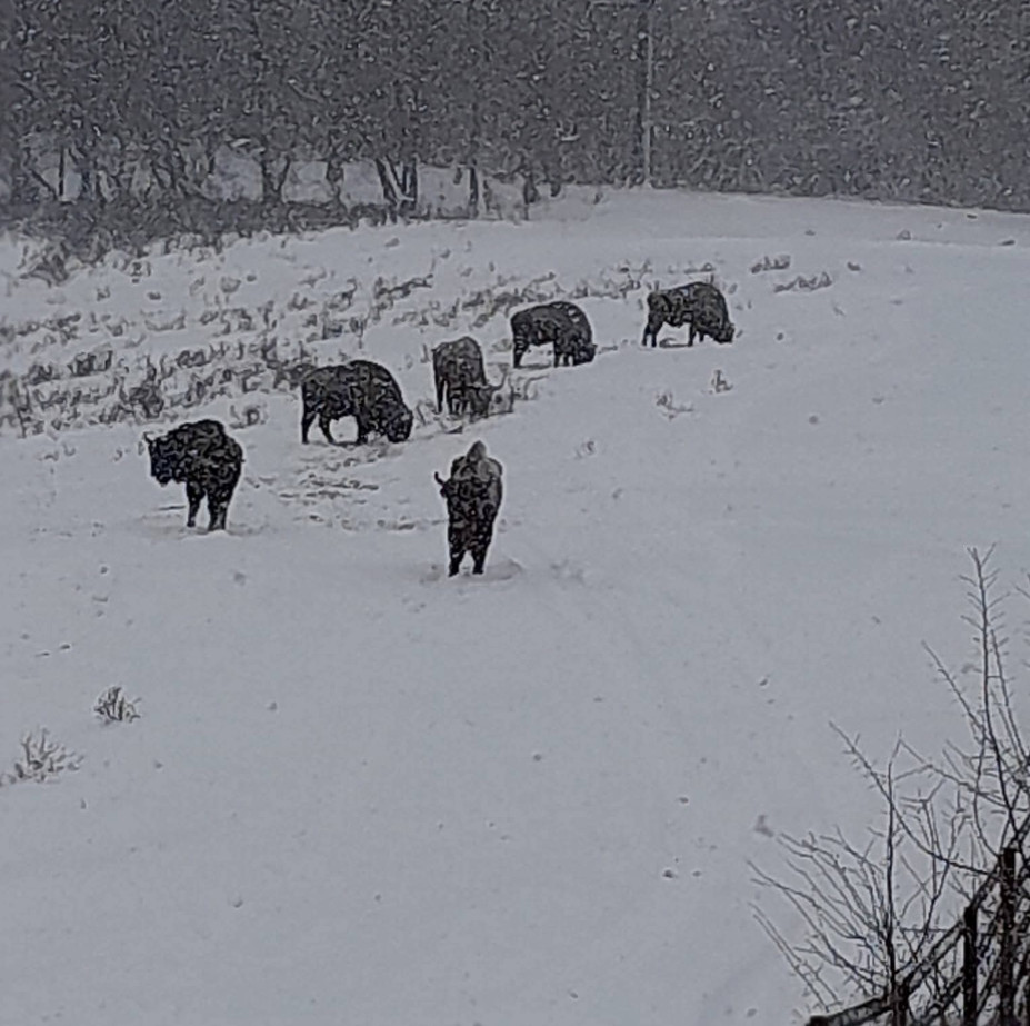 Iarna aduce o imagine spectaculoasă la Zimbrăria Neagra, situată în cadrul Ocolului Silvic Bucșani, județul Dâmbovița, unde zimbrii (Bison bonasus) se află într-un mediu protejat, adaptat nevoilor lor biologice și ecologice.
